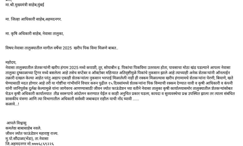 🚨 ब्रेकिंग रिपोर्ट 🌾 पिक विमा रखडल्याने नेवासा तालुक्यातील शेतकरी आक्रमक!