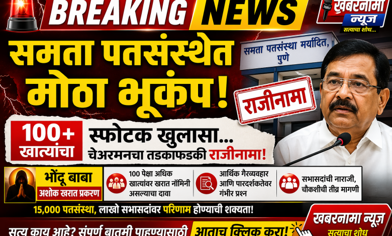 🟥 ब्रेकिंग न्यूज | खबरनामा न्यूज ⚡ “भोंदू प्रकरणाचा स्फोट! समता पतसंस्था संस्थापकांचा राजीनामा” महाराष्ट्रातील…