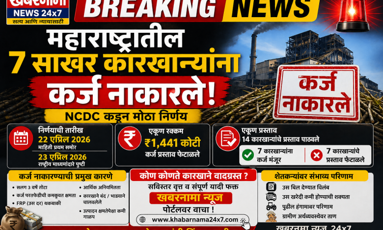 📰 खबरनामा न्यूज 24×7 | सविस्तर विशेष रिपोर्ट 🔴 महाराष्ट्रातील 7 साखर कारखान्यांना कर्ज नाकारले; ₹1,441 कोटींचे प्रस्ताव फेटाळले