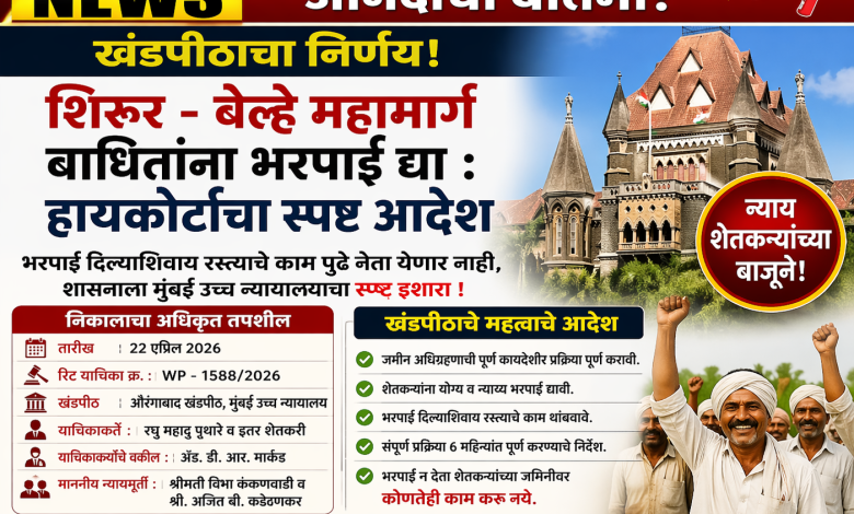 📰 खबरनामा न्यूज | ब्रेकिंग अपडेट शिरूर – बेल्हे महामार्ग बाधितांना भरपाई द्या : हायकोर्टाचा स्पष्ट आदेश